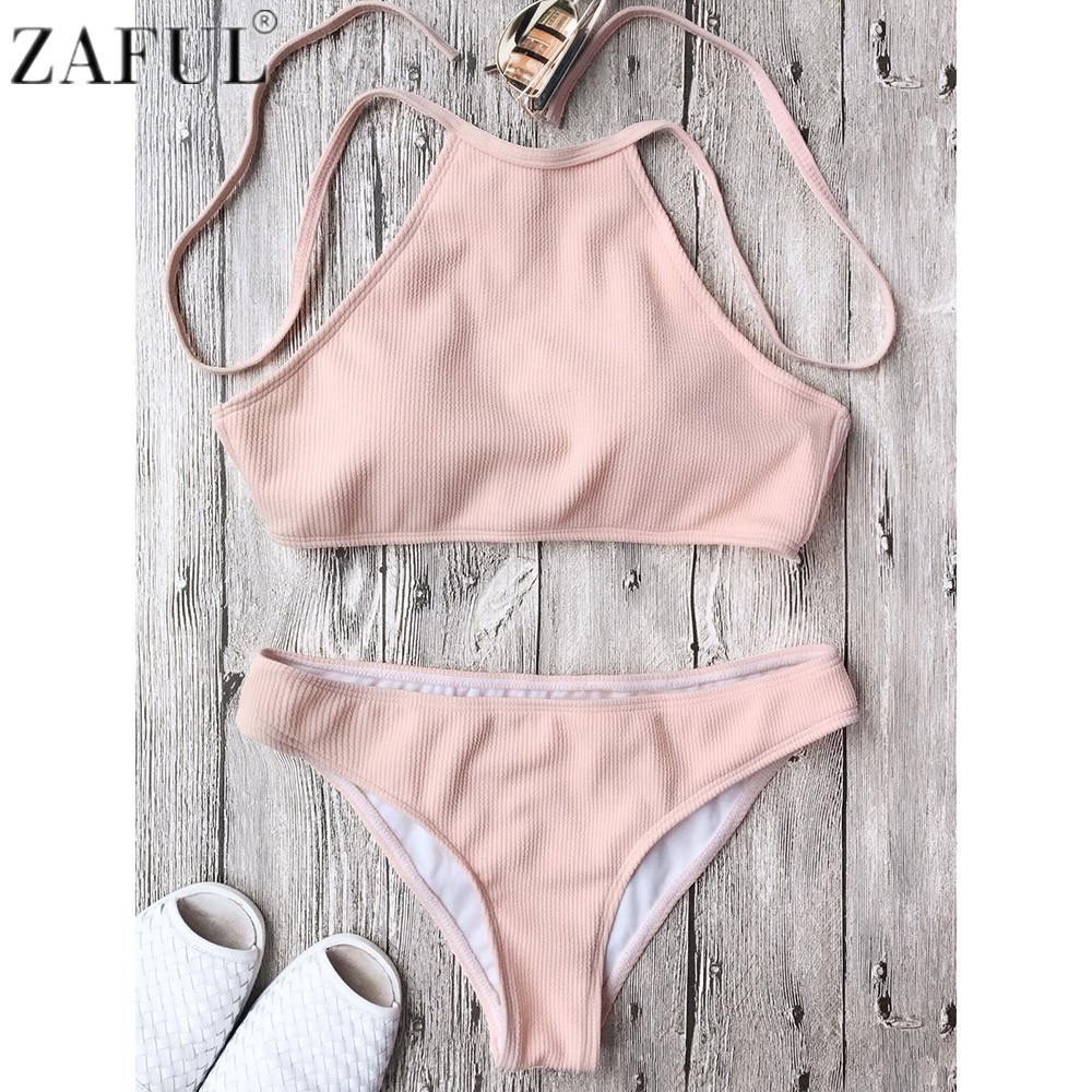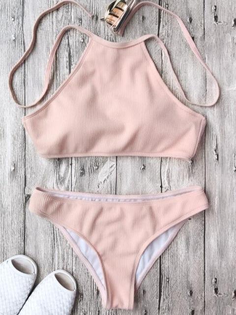 Rib Textured High Neck Bathing Suit
